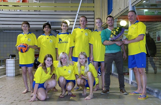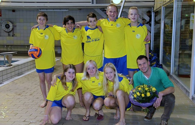 Zaterdag 9 november heeft het C1 waterpoloteam nieuwe shirts ontvangen van de nieuwe sponsor Klaas de Bruin.
