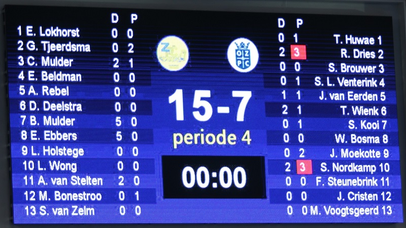 Nunspeet schoot uit de startblokken en nadat de kruitdampen van de 1e periode waren opgetrokken stond er een 6-0 voorsprong op het scorebord. In de 2e periode had Nunspeet het lastiger OZ&PC wist 4x te scoren terwijl Nunspeet 2x het doel wist te treffen. In de 3e periode herstelde Nunspeet zich enig zins en wist met 2-1 de voorsprong te consolideren. In de 4e periode gaf Nunspeet nog even gas en wist deze periode overtuigend met 5-2 te winnen. De einduitslag was 15-7 voor de thuisploeg en daarmee was de 9e plek weer veroverd.