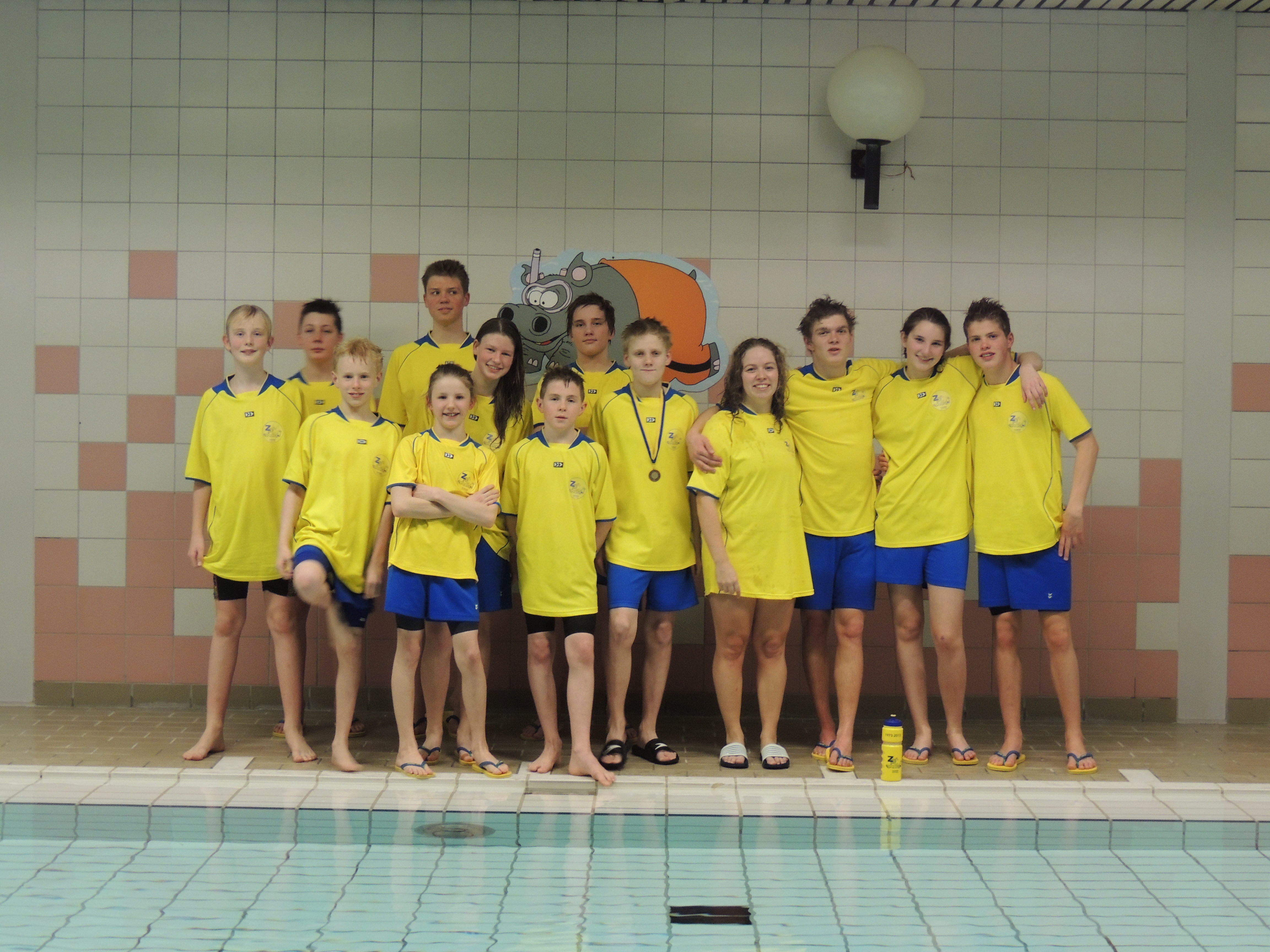 De zwemmers kunnen samen met coach Robin en Ronald terug kijken op een mooi gezwommen toernooi. Goed gedaan allemaal!
