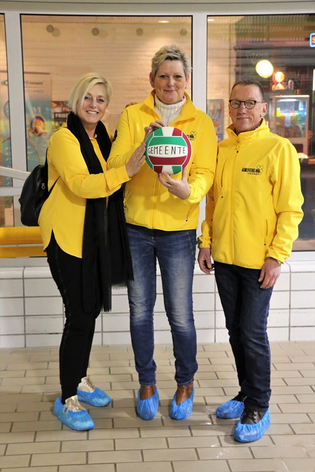 Zaterdag 29 februari bezochten een aantal fractieleden van GEMEENTEBELANG zwembad De Brake voor een werkbezoek aan onze club. Ze kwamen niet met lege handen maar brachten een wedstrijdbal mee voor de wedstrijd Nunspeet H2 – WSG ESTA H2 uitkomend in de landelijke reserve 2e divisie C.
