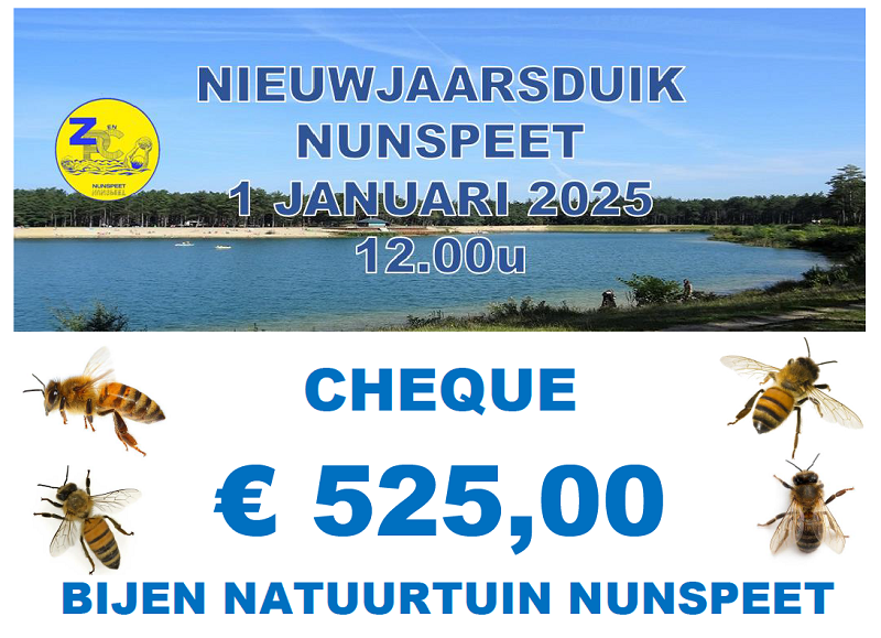 Tijdens de Nieuwjaarsduik is er gecollecteerd voor het goede doel, dit jaar was dat de Bijen- Natuurtuin in Nunspeet.