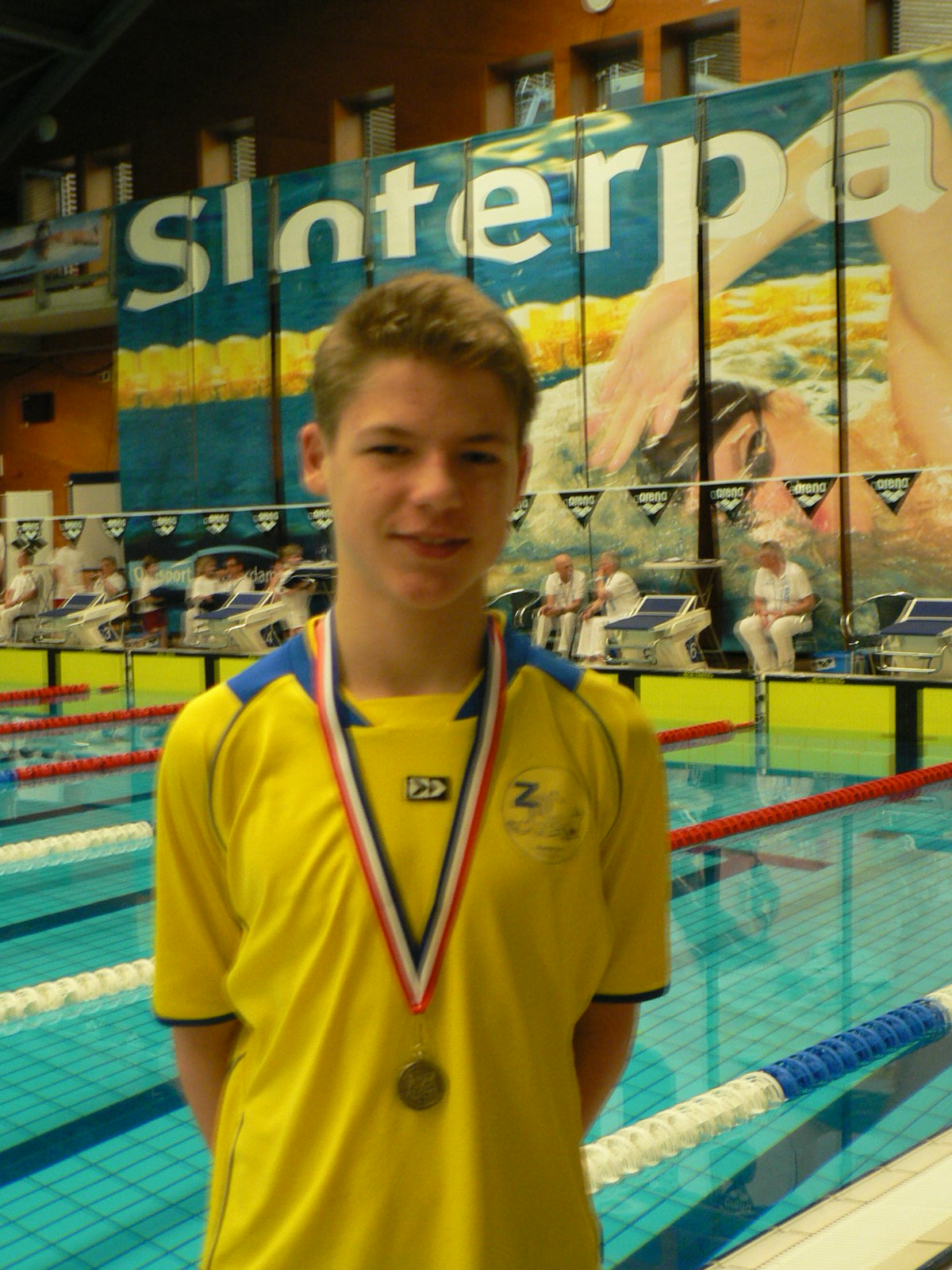 Zaterdag had hij er erg veel zin in en was er helemaal klaar voor. Hij was als vijfde geplaatst en dacht van te voren dat er wel een persoonlijk record in zou zitten. Het werden er maar liefst 5,35 en dankzij mooie onderwaterfases en een goede techniek wist hij als derde aan te tikken. Na het ontvangen van de bronzen medaille kon hij zich zondag gaan opmaken voor de 100 school. Hij stond op deze afstand als zesde geplaatst. Hij gebruikte dezelfde tactiek als zaterdag, hetgeen resulteerde in een persoonlijk record van 1,29 seconden. In een tijd van 1.09,61 zwom hij voor het eerst onder de 1,10 en eindigde als vijfde.