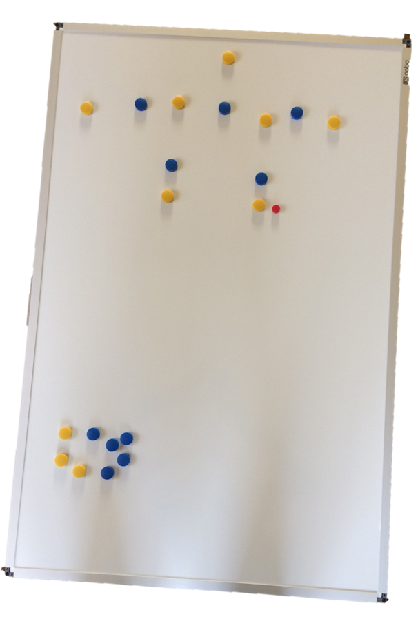 Vanaf nu kan de tactiek door de coaches weer toegelicht worden met een mooi bord met gele en blauwe magneten. Het bord kan ook beschreven worden met afneembare stiften.