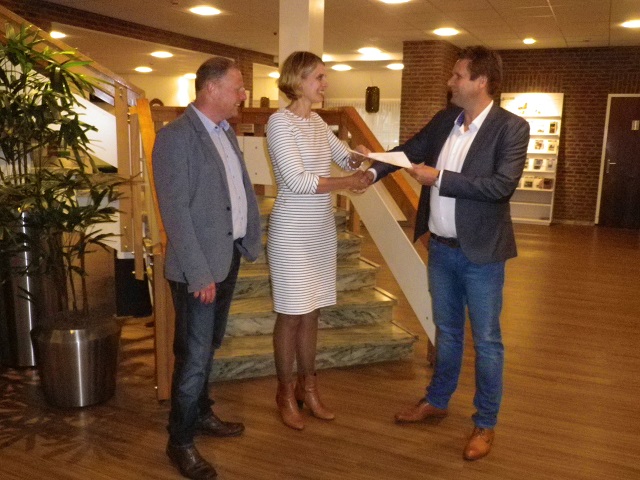 Deze verwachtingen zijn vastgelegd in een zogenaamde intentieverklaring. Een ondertekende intentieverklaring is voorafgaand aan de commissie vergadering door Harold Mensink en Gert Ponsteen, leden van de commissie nieuw zwembad van de Z. &. P. C. Nunspeet, aan wethouder Storteboom aangeboden.