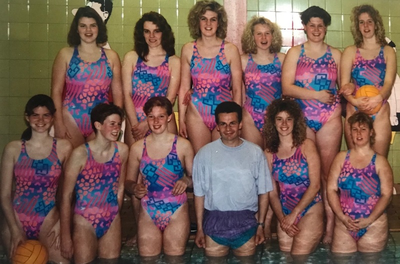 Afgelopen zaterdag hadden Ellen van Nieuwenhuize en Jacolien Ponsteen een reünie georganiseerd voor het damesteam uit de beginjaren 90 naar aanleiding van onderstaande wereld beroemde badpakken foto.