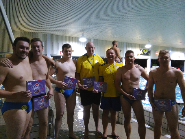 Onze waterpolocommissie is erg blij met de scheidsrechters die voor onze club fluiten. Daarom om hebben ze (v.l.n.r.) Clifford Hertel, Peter van de Kolk, Gerben Mulder, Peter de Jong, Hans Mulder, Gerben Ebbers en Wiebe Ebbers verrast met een attentie.