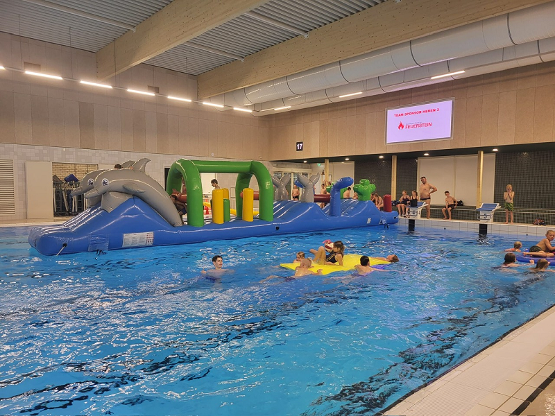 Er was een stormbaan, vlottenrace, waterpolo clinic en een wel heeeeeeeeel moeilijke brug in het water. En als afsluiter óók nog een ijsje!