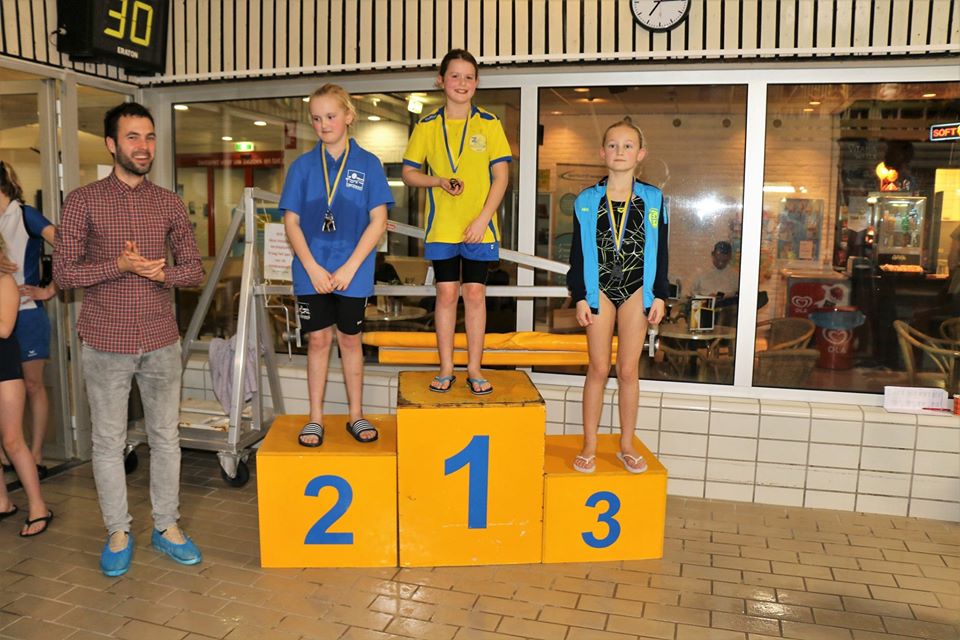 Gezwommen werd er op 30 programmanummers, in diverse leeftijdscategorieën en verdeeld over verschillende zwemslagen. Op al deze onderdelen werd fel gestreden om de medailles. In de pauze waren de eerste uitslagen bekend en zijn de eerste medailles al uitgereikt. Daarvoor was de wethouder sport, Mark van de Bunte, aanwezig. Hij mocht de glunderende gelukkigen de speciaal voor deze wedstrijd uitgezochte medailles uitreiken. ‘Vanuit de gemeente zijn we heel blij met dit soort evenementen, die de sport onder de jeugd stimuleren. Wat verder direct opvalt is dat er zo veel officials nodig zijn om een wedstrijd mogelijk te maken. Mooi om te zien dat zo veel mensen bereid zijn hier op zaterdagavond een bijdrage aan te leveren’, aldus Van de Bunte.