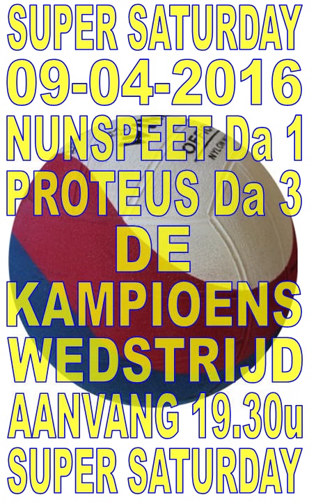 Bij winst is de ploeg, die momenteel 6 punten voorsprong heeft op Proteus, niet meer in te halen. Bij verlies zullen de laatste 2 wedstrijden tegen Aquapoldro uit Apeldoorn en ZEW uit Ermelo door onze dames gewonnen moeten worden om zo het kampioenschap op 23 april as. alsnog veilig te stellen. Een kampioenschap voor de dames is meteen een historisch feit voor onze club. Een Nunspeets damesteam is voor het laatst in het seizoen 1993-1994 kampioen geworden.