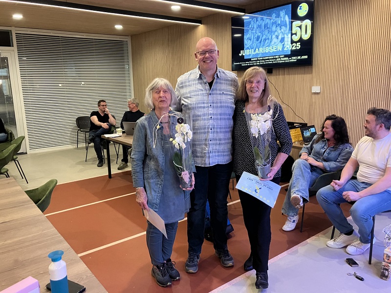We hebben dit jaar twee 50 jarige jubilarissen. Tiny de Jong – Keet (1 januari 1975; ere lid) en Jos Parrel – ter Heege (21 oktober 1975; ere lid). Zij ontvingen uit handen van voorzitter Peter de Jong een oorkonde, een speldje en een klein presentje.