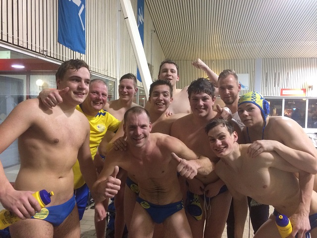 Het bestuur en de waterpolocommissie zijn enorm trots op het team bestaande uit Evert de Bruin (aanvoerder), Klaas de Bruin, Stefan Hofman, Yannick Ponsteen, Reinoud Bast, Corné Ponsteen, Ruben Lokhorst, Jasper Mulder, Michel Tjeerdsma, Stefan van Engelen, Hans Mulder (coach) en Gert Ponsteen (teammanager) en wensen de mannen heel veel succes toe bij de laatste wedstrijden.