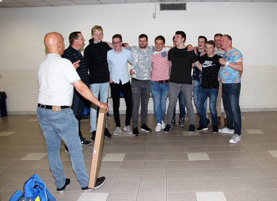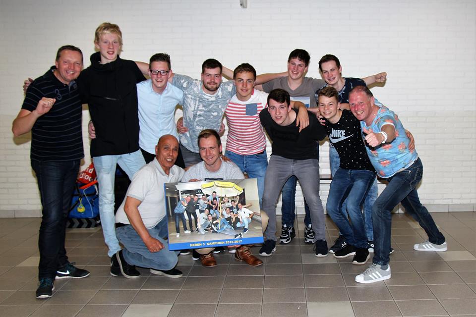 Een andere traditie is een op canvas afgedrukte kampioensfoto van onze clubfotograaf George Hertel. Gisteravond werd Heren 3 verrast met de kampioensfoto die een mooie plaats in het sportcafé zal krijgen.