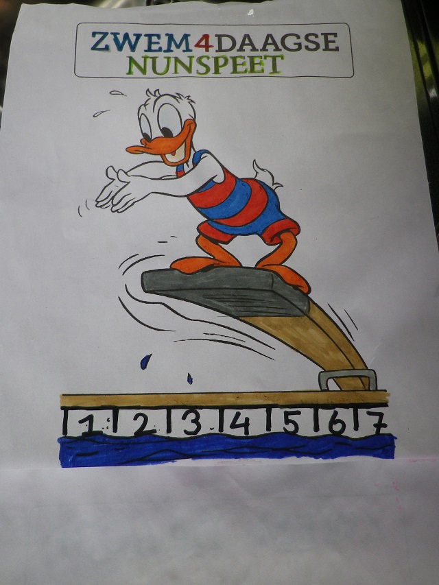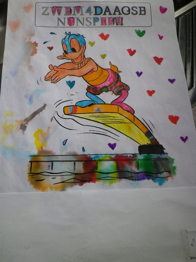 Tijdens de 5e Zwem4Daagse die dit jaar van 26 augustus tot en met 30 augustus gehouden werd konden kinderen een kleurplaat van Donald Duck inleveren.